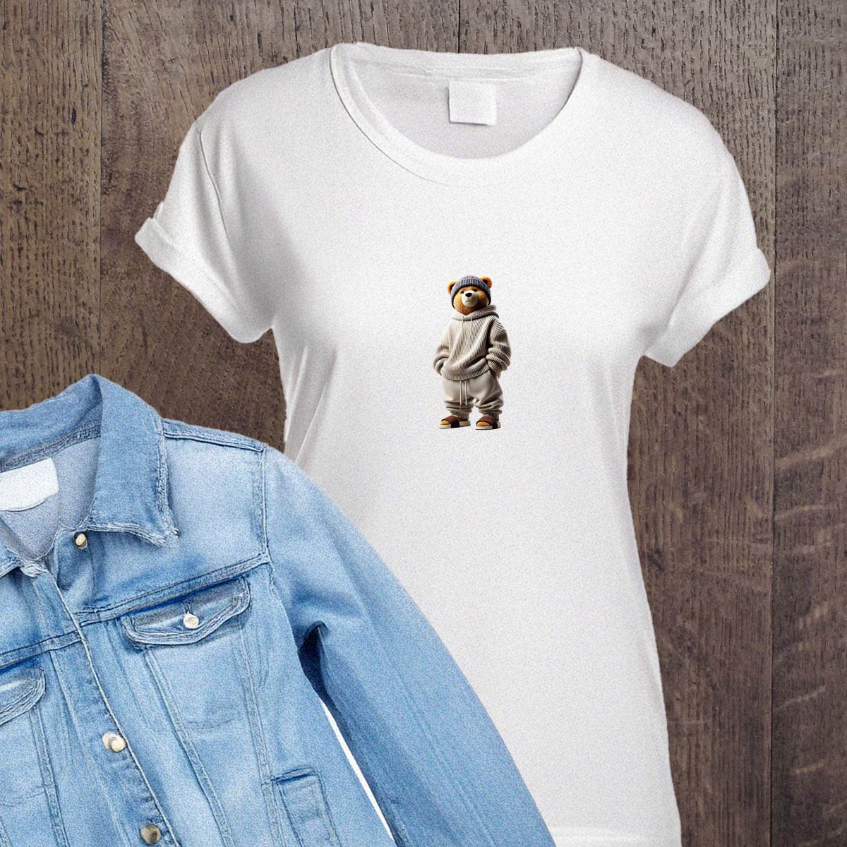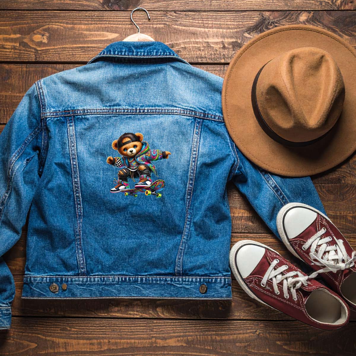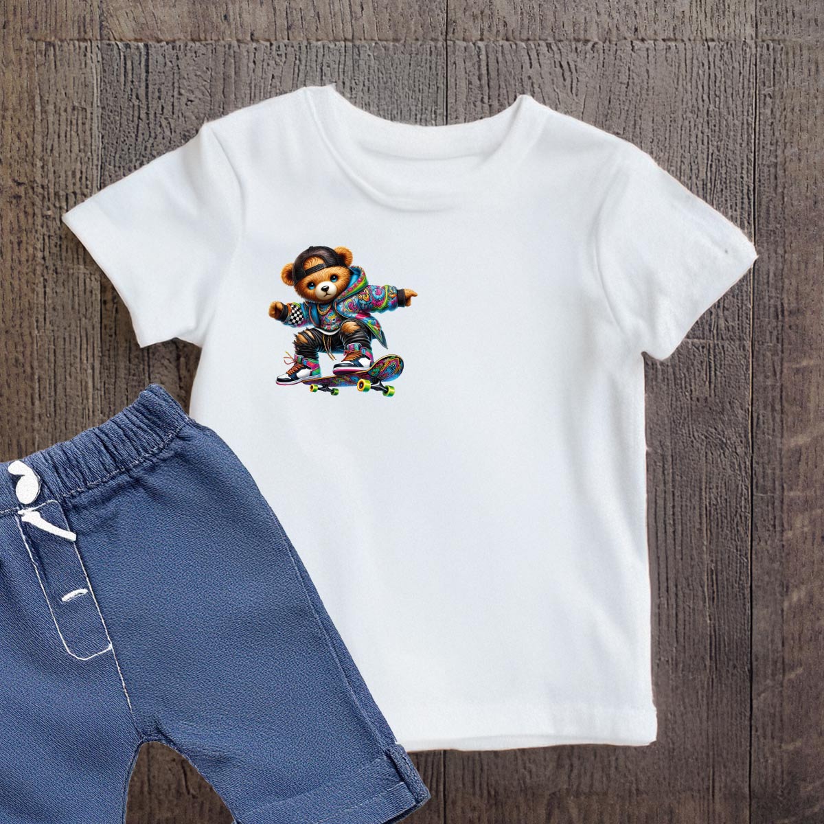 Naprasowanki, Naplamki, Termo Naklejki na Ubrania DTF - 2 Misie zestaw z Deskorolką