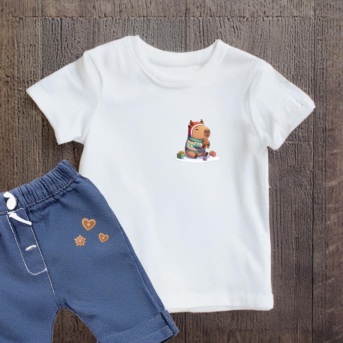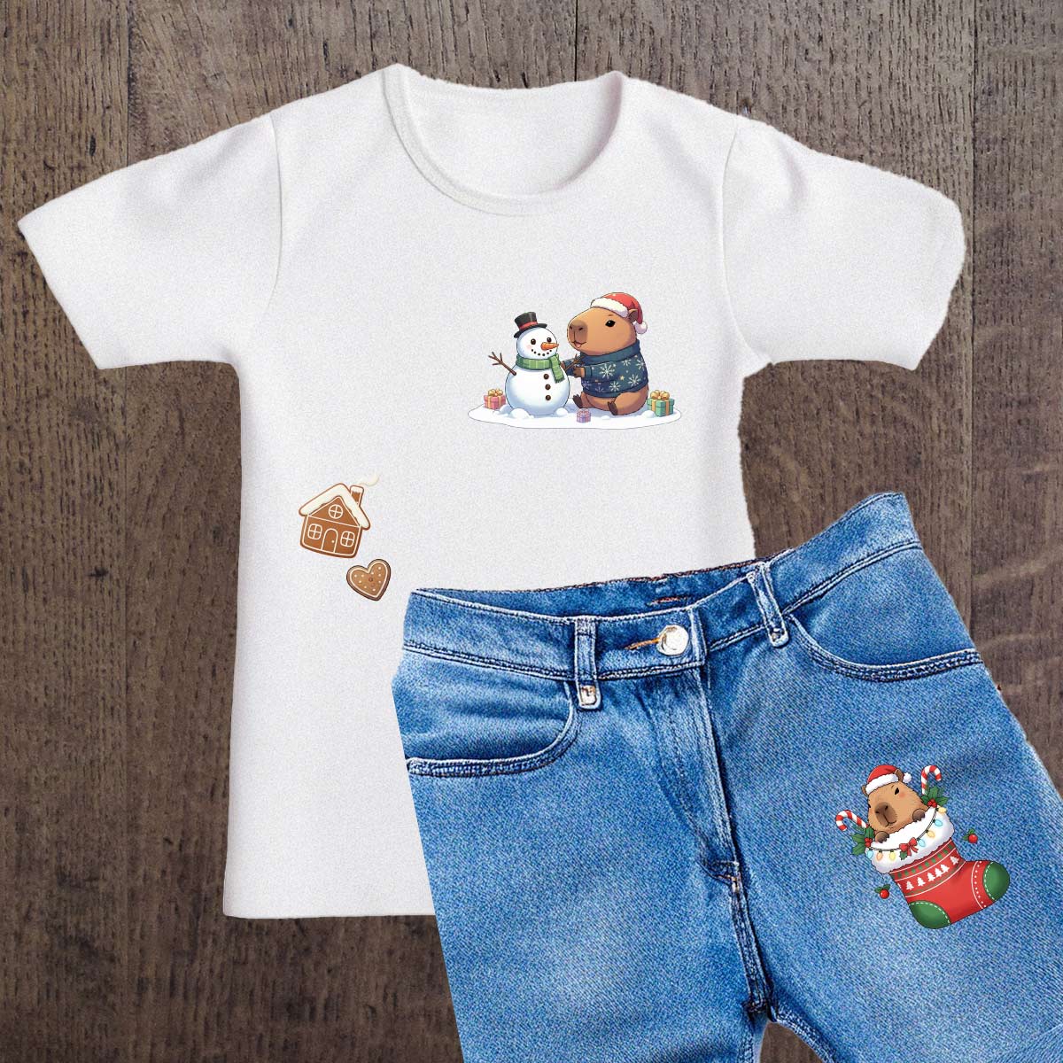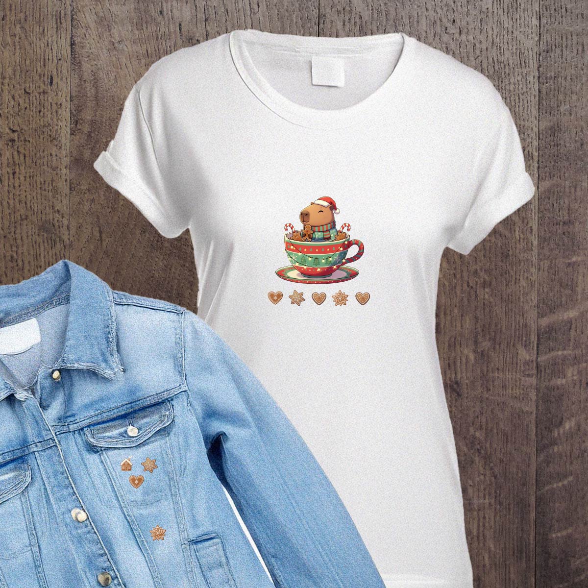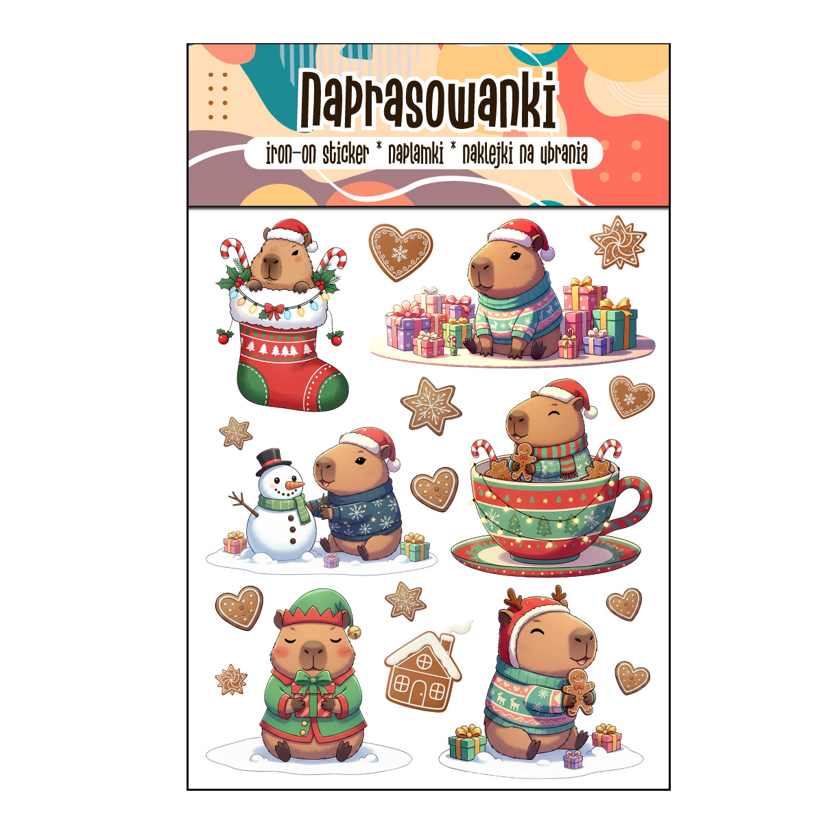 Naprasowanki, Naplamki, Termo Naklejki na Ubrania DTF - Świąteczna Kapibara